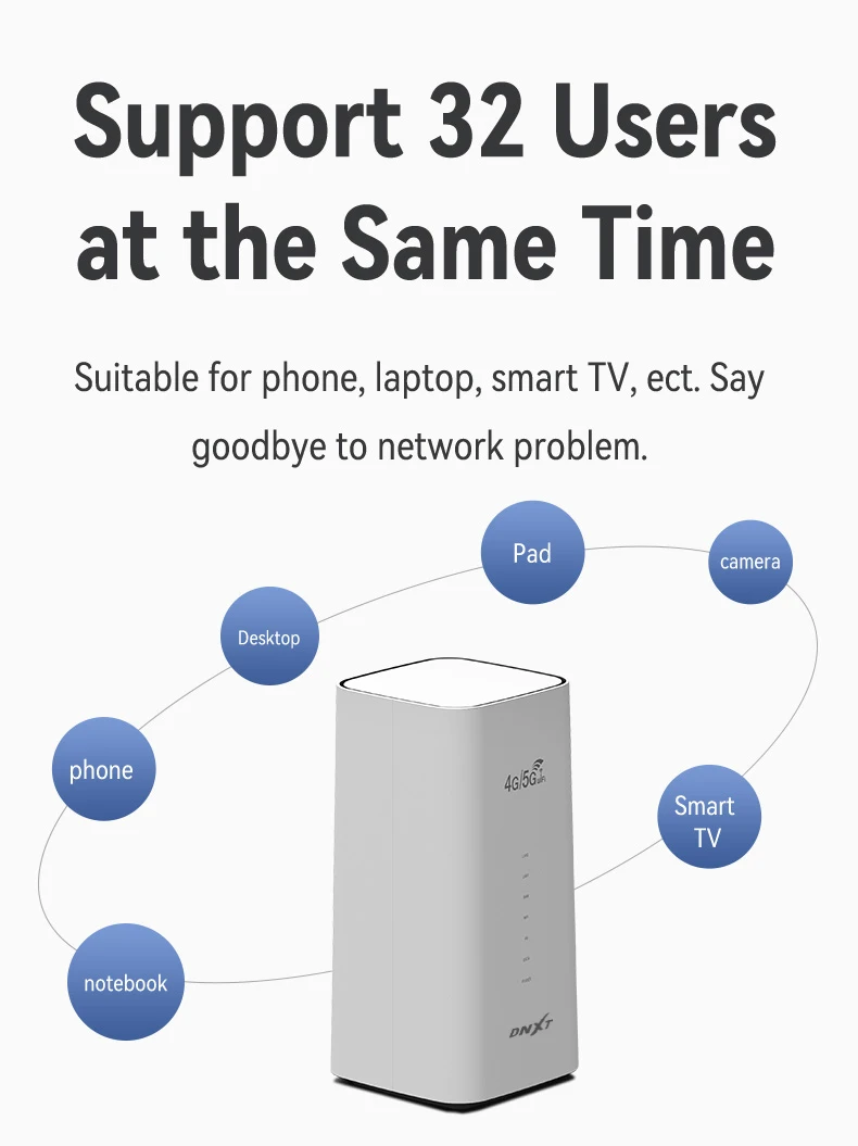 جهاز توجيه واي فاي محمول بشبكة CPE LTE بشبكة الجيل الرابع/الخامس من DNXT مع هوائيات مدمجة بعدد 4 هوائيات جهاز لوحي منزلي متنقل جهاز مودم دونغل الأكثر مبيعًا